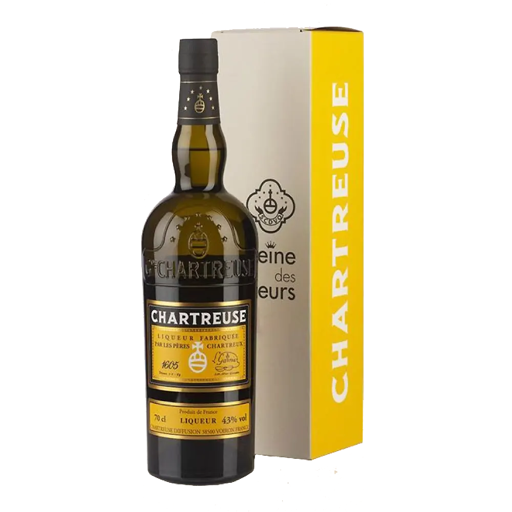 La Chartreuse Jaune est élaborée en 1840 par le frère Colomban et le Frère Bruno Jacquet qui y met la touche finale. Elle est plus douce que la Verte et ne titre que 43% (ou 40% selon les périodes) mais fait appel aux mêmes plantes. Sa couleur lui vaut d’’être officiellement baptisée Chartreuse Jaune par le père Garnier, procureur et responsable des liqueurs de l’’époque. Cette édition Reine des Liqueurs est un assemblage de liqueurs sélectionnées par les Pères Chartreux pour reproduire le style des Chartreuses Jaunes du XIXe siècle. Depuis 2017, la Reine des liqueurs est tirée au même nombre d’exemplaires que l’année de sa sortie. Cette mise 2018 est donc limitée à 2 018 bouteilles.